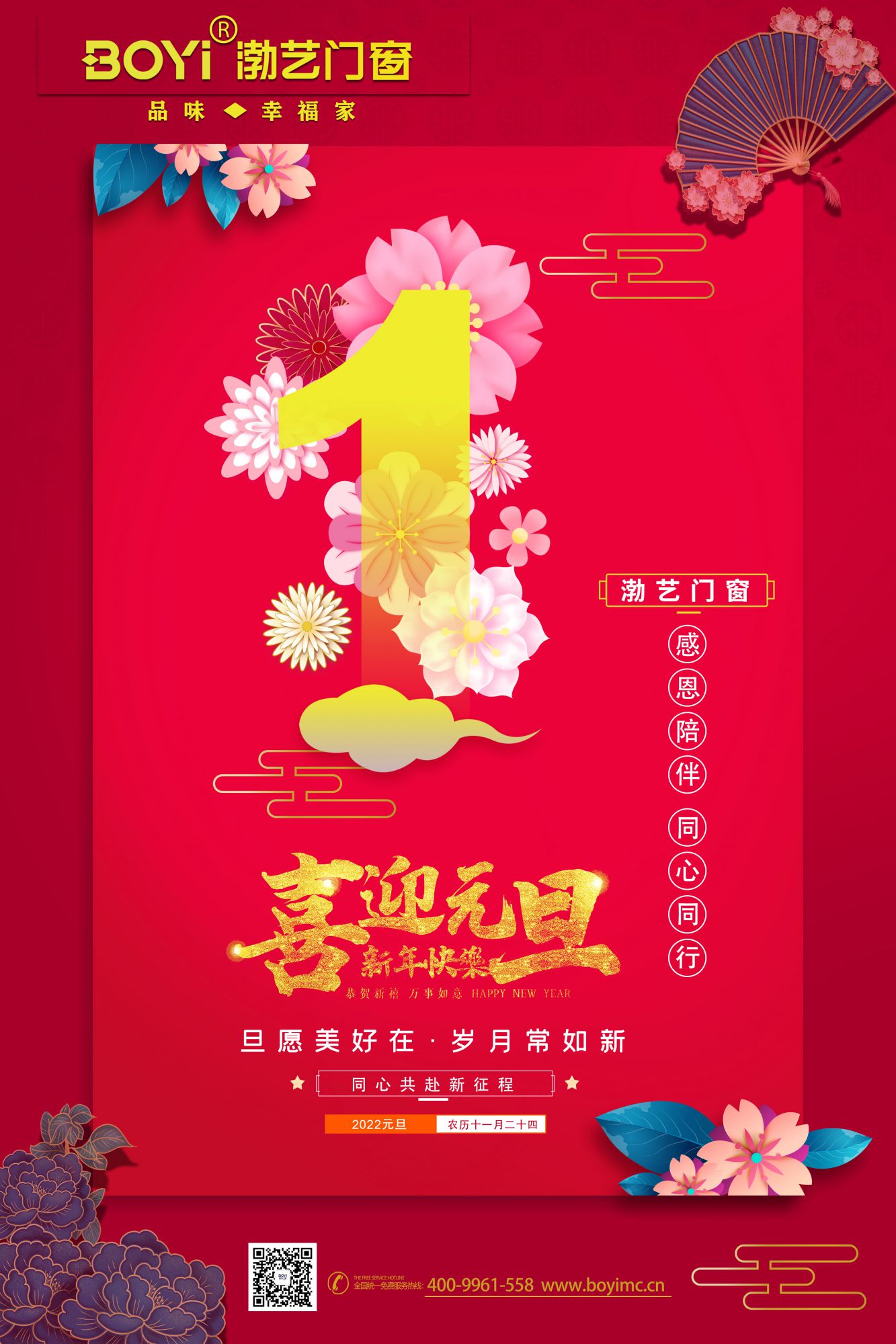 2022年已经到来,崭新的一年崭新的开始,渤艺门窗在新的一年里祝大家新年快乐!万象更新!